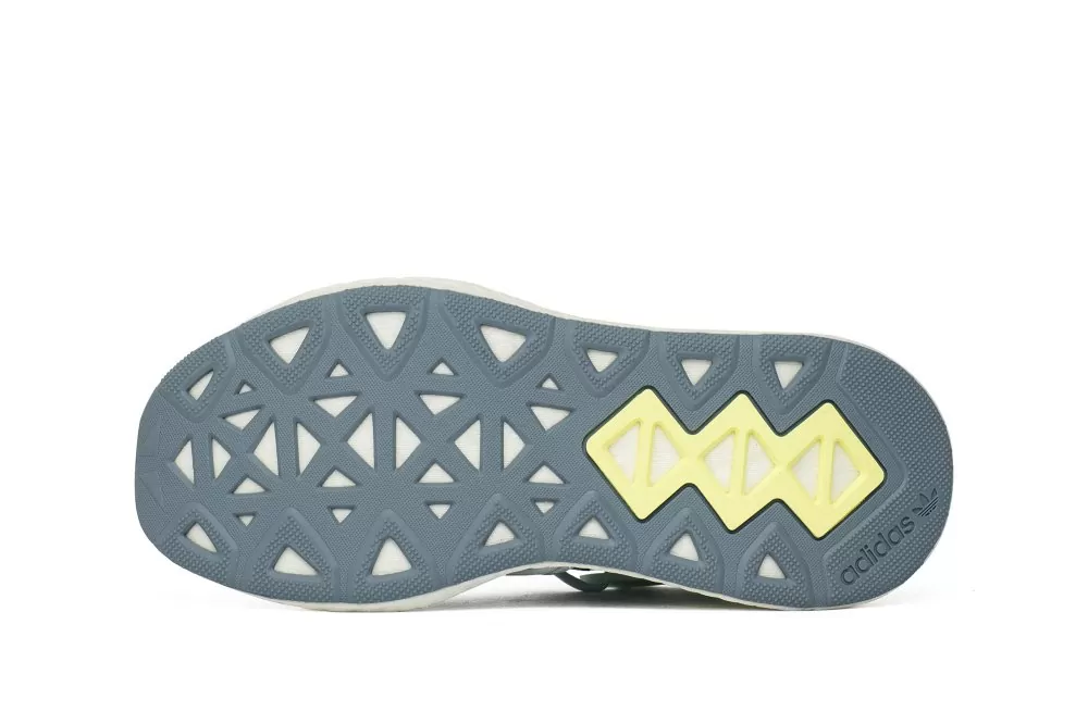 Женская модель adidas Arkyn из коллекции, подготовленной к летнему сезону 2019. Верх в виде носка из эластичного текстильного материала поддерживается мини-клеткой с ТПУ и неопреновым элементом на каблуке. Все выдержано в пастельных тонах, сочетающих два оттенка синего и серого. Конструкция закрывает подошву амортизирующей пеной с черной подошвой.