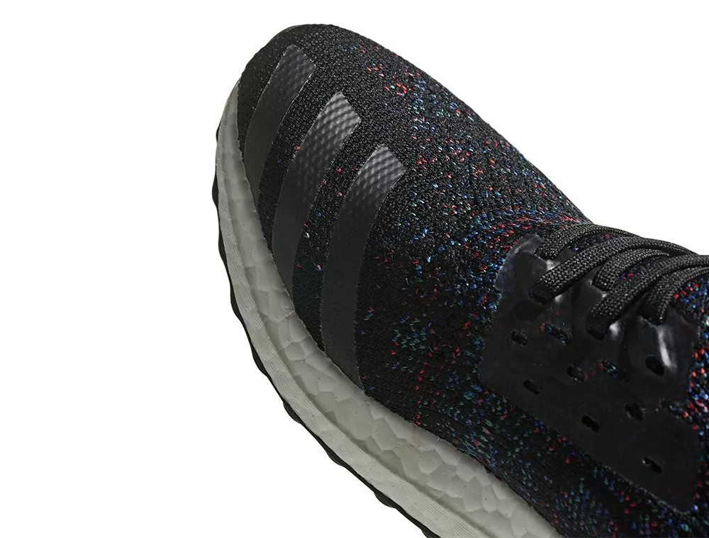 Вязаный верх adidas Primeknit усилен в ключевых зонах, а промежуточная подошва Boost отлично амортизирует, выталкивая тебя вперед.